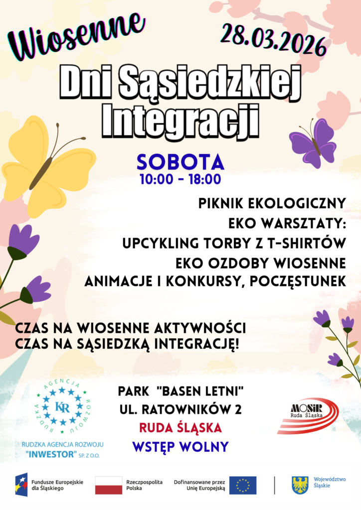 Już 28 marca 2026 roku zapraszamy mieszkańców Rudy Śląskiej na wiosenne spotkanie integracyjne pełne dobrej energii, kreatywności i działań ekologicznych. Spotykamy się w Parku „Basen Letni”, gdzie czekać będzie na Was piknik sąsiedzki połączony z warsztatami, animacjami i wspólnym działaniem na rzecz środowiska. 🌱